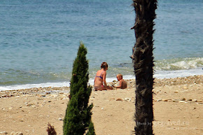 Однако пляж открылся мне достаточно ухоженным, отстроенным, с десятками загорающих и почему-то массово ловящих крабов, людей.