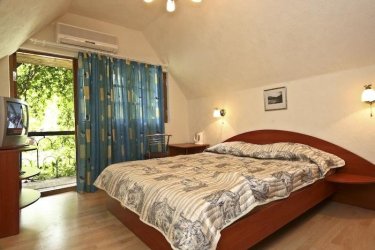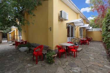 Трехместный номер с отдельным двориком. Номер имеет отдельный выход в закрытый дворик и оборудован кондиционером. В номере: двуспальная кровать и раскладной диван, платяной шкаф, телевизор, холодильник, ный столик с зеркалом, небольшой набор посуды, электрочайник, отдельный санузел с душевой кабинкой.