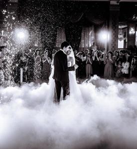 Последний популярный эффект – «Тяжелый дым», который окутывает на время танцующие пары молодоженов, словно поднимая их на облака.