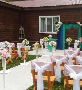 Двухэтажный дом, на первом этаже которого размещены банкетные столы, вместимость до 60 человек.