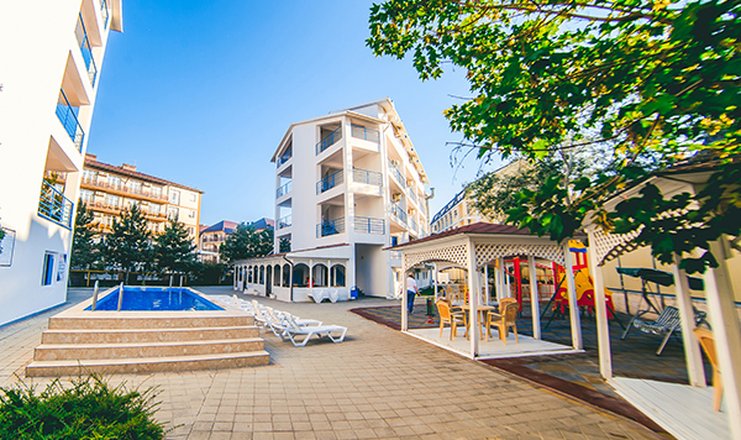 Отдыхали 3 взрослых и 2 детей в отеле с 23.08 по 2.09, номер 204.Комнаты большие,чистые ,большой балкон.Белье меняли каждые три дня.На 2 комнаты один туалет,и одна душевая.В обеих комнатах кондиционер.Нет точечного освещения над кроватями,что неудобно,когда один ч-к хочет спать,а другой почитать.Удобные сумки- матрасики с пляжными полотенцами.В столовой стандартное советское питание,порционное.Для людей с проблемами веса и повышенного сахара не подходит,т.к. в меню : пюре,макароны,рис,греча,каждое питание- вкусные булки.В обед всегда вкусные фрукты -порционно. Хотелось бы в качестве гарниров тушеные овощи.Для здорового человека - вполне приличное питание,может быть маловато для мужчин.Уютная территория возле бассейна с беседками и скамеечками,соснами и цветами.Три раза в неделю интересная развлекаловка для деток, а в остальные дни кино на зкране. Отель вполне соответствует 3*.К сожалению испортило впечатление то,что просили предоставить любой номер за дополнительную плату на день выезда ( за 3 дня до выезда),т.к. ребенок,заболевший ротовирусной инфекцией был в очень тяжелом состоянии,но нам сказали,что свободных номеров нет и обезвоженный ребенок 4 часа вынужден был находиться на жуткой жаре,даже в тени (был вариант еще на ресепшен под кондиционером).