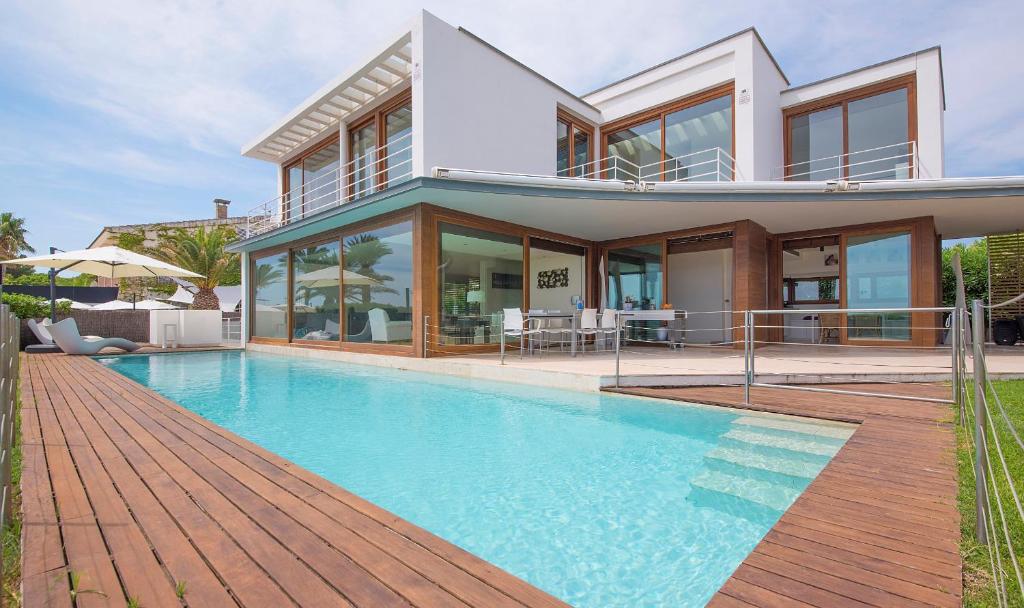 Трехуровневая вилла с бассейном, окруженная роскошным садом, расположена всего в 600 метрах до многочисленных песчаных пляжей.