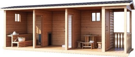 Строительная компания: Перевозная большая баня 6 м с длинной верандой