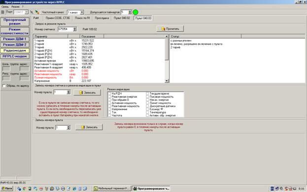 Опрос и Параметризация П.У. РиМ 189.04 радиомодемом Рим 043.01
