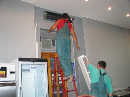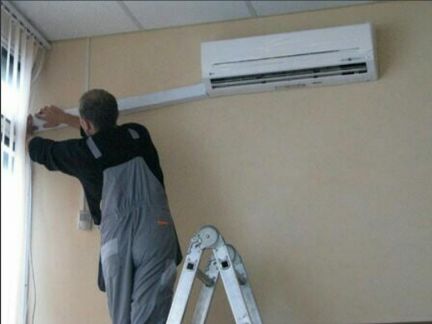 В первом случаи, монтаж оборудования производится в течение нескольких часов и подразумевает установку внешнего и внутреннего блока сплит-системы, прокладку межблочных коммуникаций, герметизацию системы и тестовый запуск.