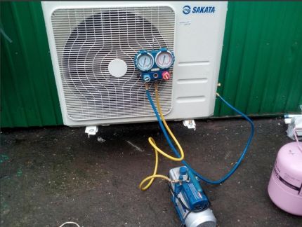 - Отключают технику от сети, аккуратно выкачивают из нее фреон с помощью специального оборудования.
