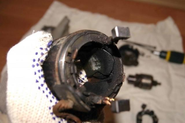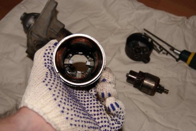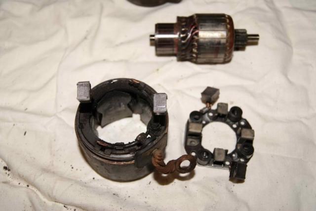 Осмотрите обмотки стартера, внутри увидите, что там очень много грязи, также опилок.