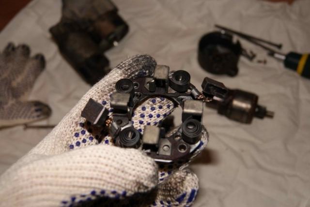Из предыстории: 2 года назад на этом же стартере менял бендикс, т.к. он накрылся в один прекрасный и морозный день. но когда разбирал, увидел, что 2 щетки мотора уже на минимуме. своевременно в магазинах не нашел, поэтому поменял только бендикс, а щеточный узел не трогал, думал летом поменять. :))) но и летом до него руки не дошли:)) ну и как обычно бывает этой зимой он дал о себе знать, отказываясь нормально крутить в мороз.