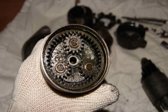 Далее вытащил редуктор с бендиксом и рычагом привода.