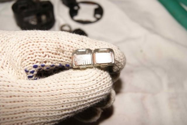 Контакт, расположенный в центре мы не стали снимать. После с помощью плоского напильника придавили контакт к напильнику плотно, всё лишнее сточили. Проблем в этом не был, тут главное конечно не поменять угол плоскости контакта, площадь должна остаться неизменным размером.