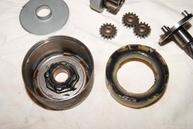 Далее снимаем крышку планетарного редуктора и разбираем редуктор полностью, чтобы все отмыть и очистить