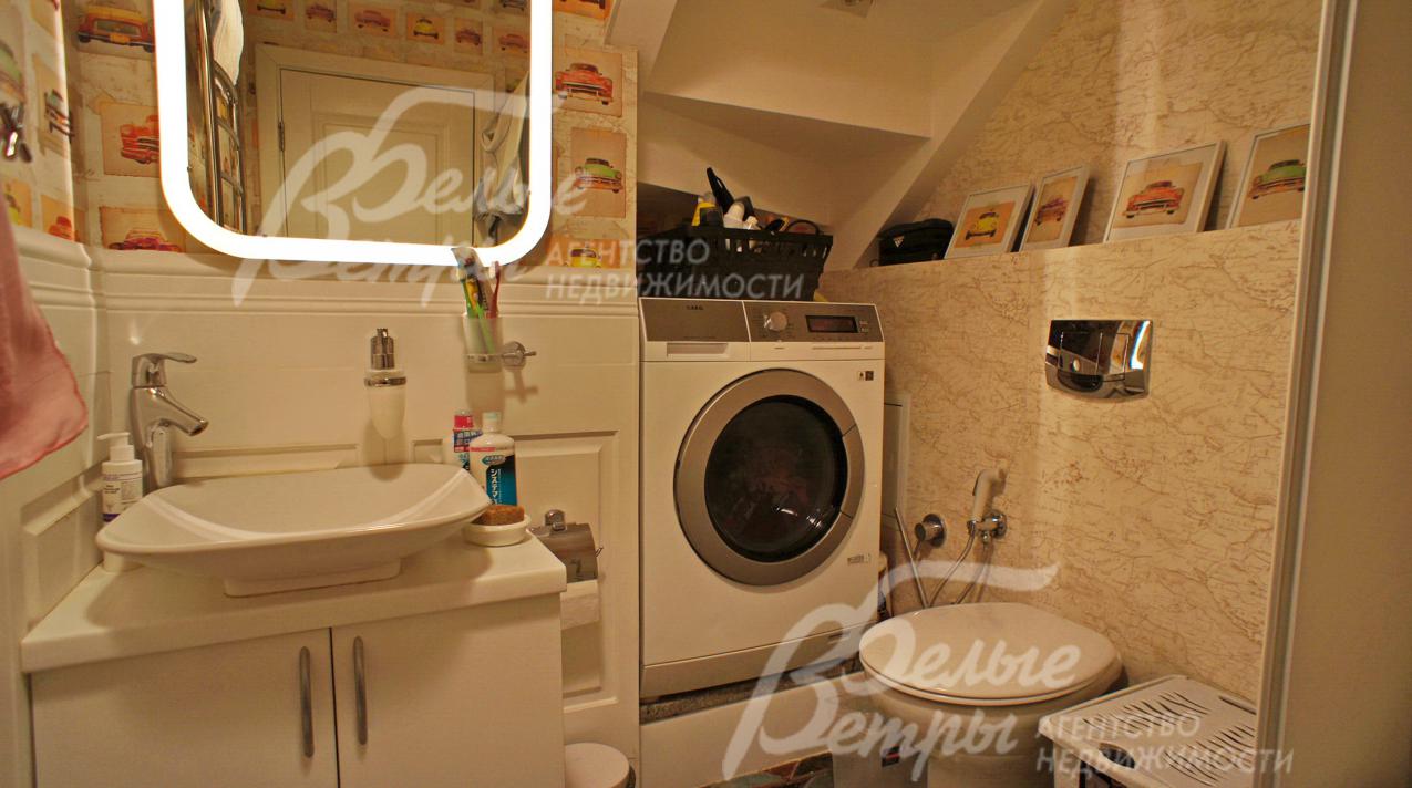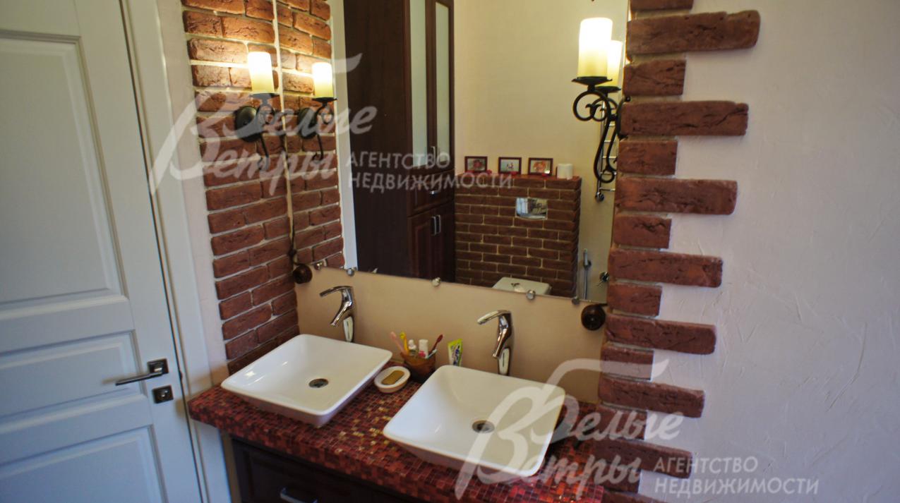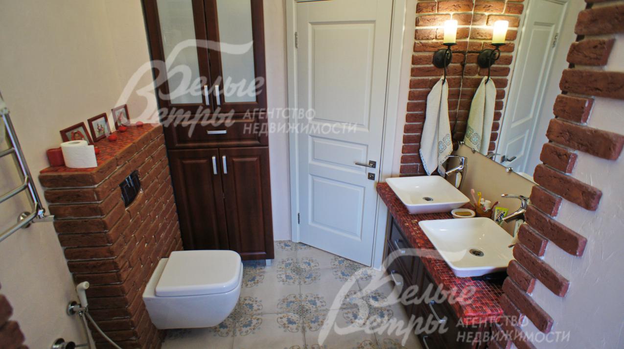 Описание внутренней отделки: Стильная современная отделка с использованием различных дизайнерских элементов. Стены окрашены, отделаны декоративной штукатуркой, плиткой под состаренный кирпич (стена в гостиной и в санузле на втором этаже), оклеены фотообоями. В прихожей, санузлах, зоне кухни полы покрыты керамогранитом с водяным подогревом, в остальных комнатах паркетной доской. Потолки натяжные с подсветкой. Лестничный марш железобетонный поворотный, ступени и поручни из беленого дуба. Двери деревянные. Вся сантехника установлена импортных брендов. Все коммуникации разведены под ключ. Радиаторы стальные "Kermi". В гостиной у выхода на террасу в полу установлен конвектор.