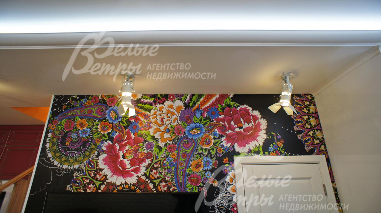 Описание внутренней отделки: отделка выполнена из качественных материалов. Стены однотонные в светлых тонах, многоуровневые потолки, много точечных светильников.