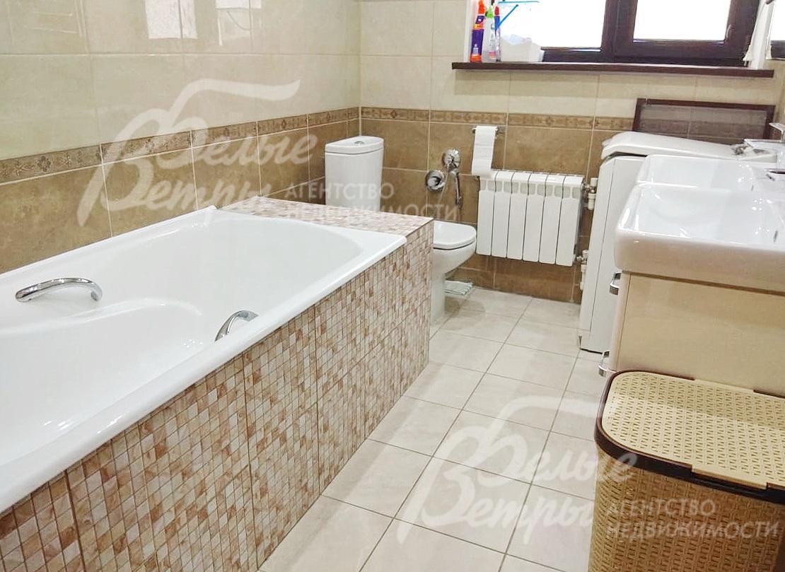 Мебель, оборудование: есть вся необходимая мебель. Кухонный гарнитур "Стильные кухни" из массива дуба, диван, кресло в гостиной, в детской комнате 2-х этажная кровать и односпальная кровать, в спальне - двуспальная кровать, в кабинете стол и кресло. Дом укомплектован бытовой техникой - есть посудомоечная машина, газовая плита и духовой шкаф "DeLonghi", холодильник "Bosh". Так же в пользование арендатора предоставляется стиральная машина, пылесос и телевизор. Во всем доме есть карнизы со шторами. Есть точечные светильники, под длительного арендатора обсуждается покупка люстр.