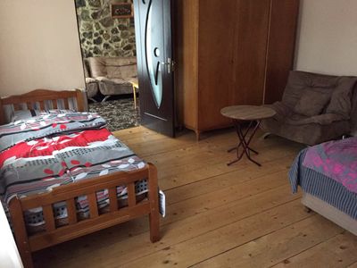 Дом расположен в центре города Боржоми, рядом леса. В доме ремонт закончили недавно. 7 спален, 4 ванных.