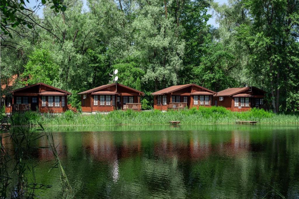 Здаються чотири екобудиночки: три трьохмісні, один на шість осіб (за бажанням та додаткову плату можна скористатися банею). Є прибудинкова тераса, стіл, лавочки, індивідуальний мангал. У середині будинки з усіма зручностями: мікрохвильова піч, електрочайник, посуд, душ (є гаряча вода), туалет, постільна білизна, телевізор, холодильник. Прямий вихід до озера, де за додаткову плату можна порибалити (1 день – 300 грн, доба – 400 грн). Поруч є рибний ресторан, дитячий майданчик, також можна взяти на прокат велосипеди та дерев'яні лодки.