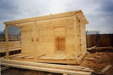 Сруб баньки из строганного бруса 150*150, сняты фаски, с выносом под веранду, высота 2, 25. Комплек.