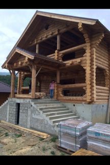 Двухэтажный дом площадью 400 кв. м. Здание из дерева с удобствами для круглогодичного проживания.