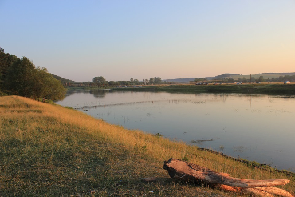 Проехав Суксун, навигатор вывел нас по хорошей гравийной дороге на место, находящееся немного в стороне от основной стоянки машин. Очутившись на берегу реки, узнали у местных что водопад находится на нашем берегу и нам даже не надо переходить по подвесному мосту на другой берег. Основная масса машин располагалась как раз на другом берегу.