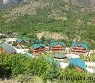 — в благоустроенных 1, 2, 3 и 4-х местных номерах со всеми удобствами с балконом в деревянных домиках (стандарт): санузел, холодильник, кондиционер. Питание трёхразовое, вегетарианское.