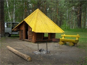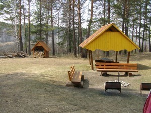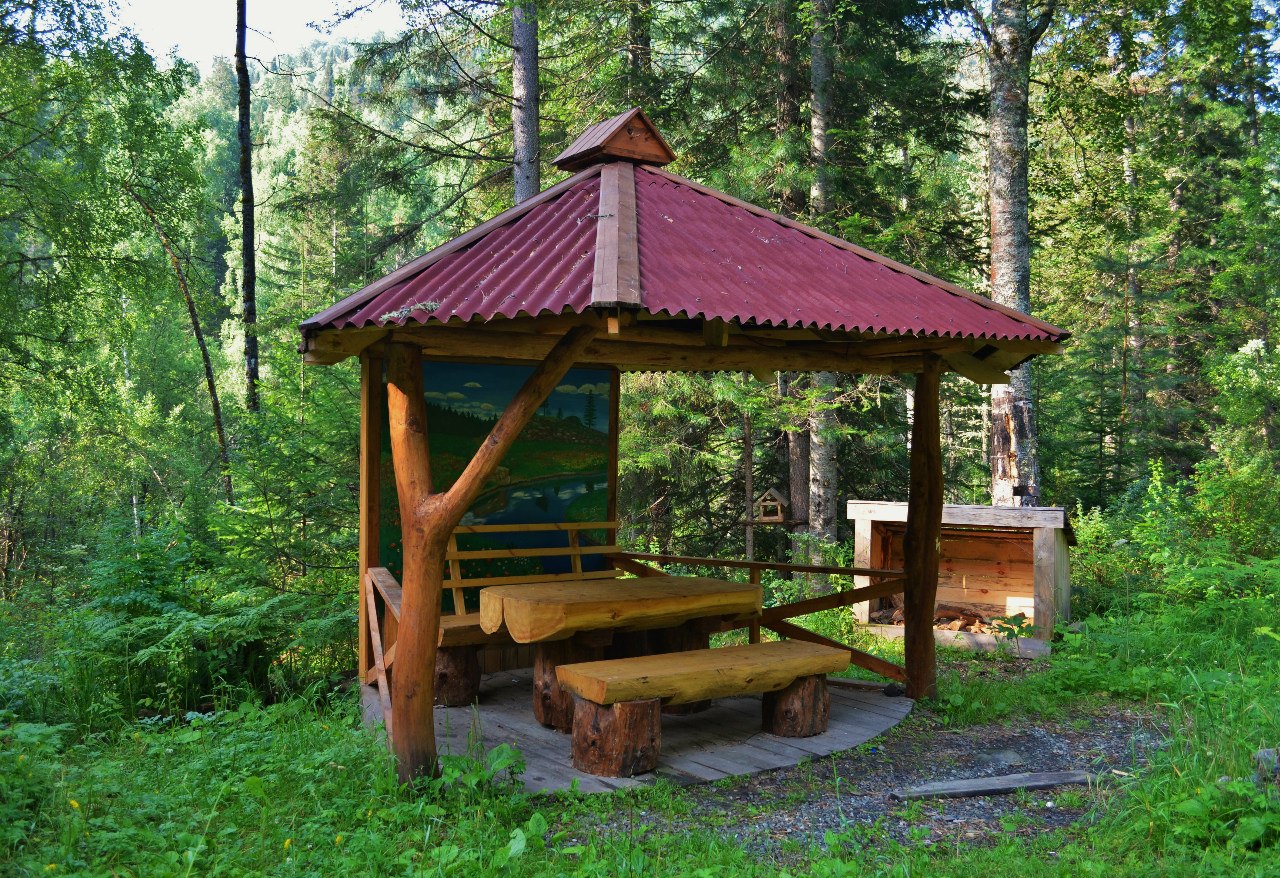 Очаровательная беседка на кордоне "Таёжный" с радостью примет Вас - здесь есть все, что нужно для полноценного привала- дрова, костровище, мангал и пьянящий таежный воздух.