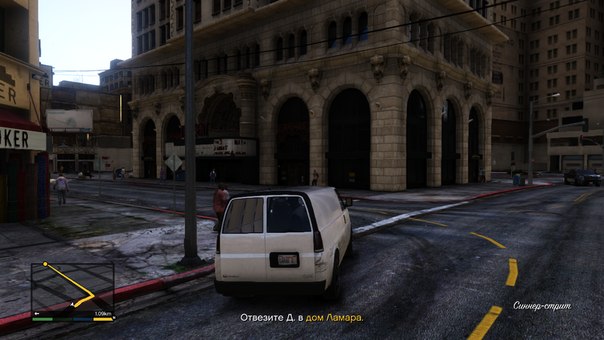 — Похищение 5-47 Сикамо-стрит (веселые парни засовывают в машину девушку в длинном платье).