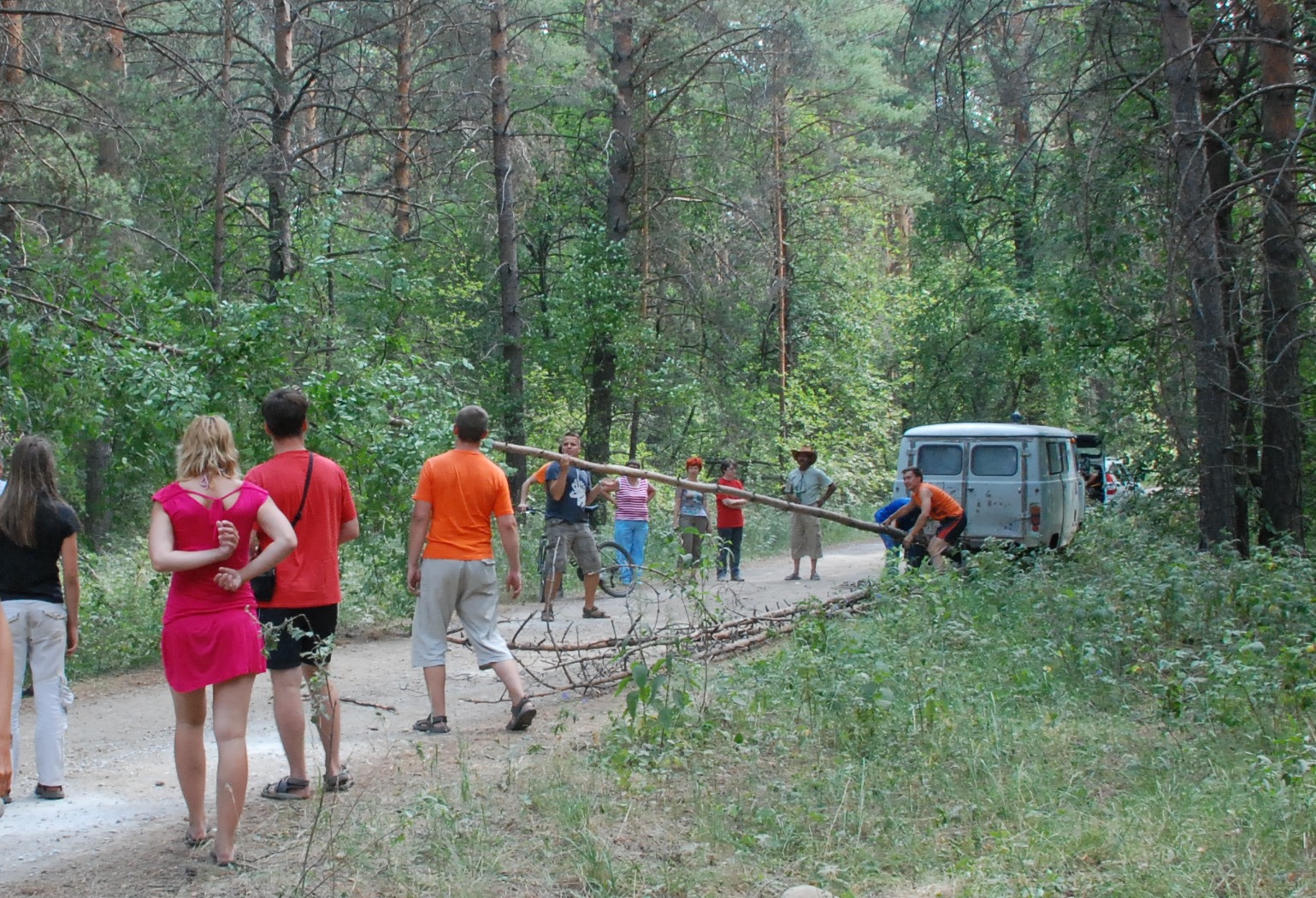 По дороге запаслись дровами. Свалили пару сухих сосенок и привезали на канат к "буханке" — УАЗ великая сила!
