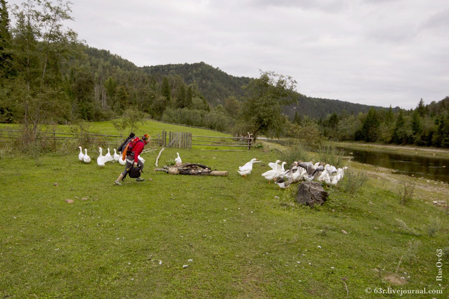 Вернувшись в Толпарово(1) на турбазу "Артыш"(2) (по пути Надежда успела погонять гусей, бегая за ними с тяжелым рюкзаком), нас уже ждала горячая баня.