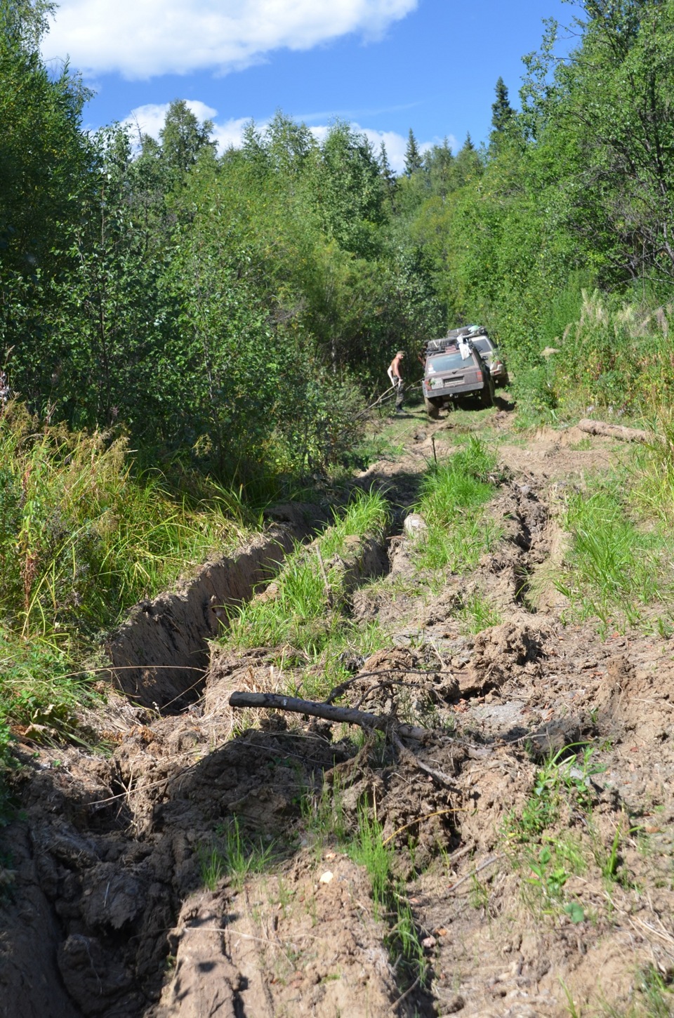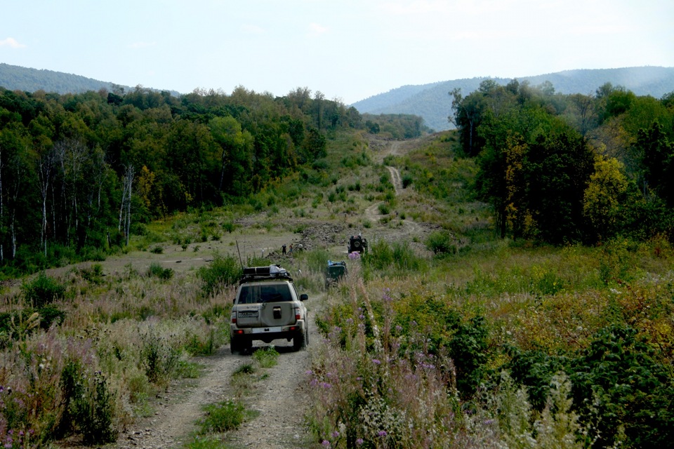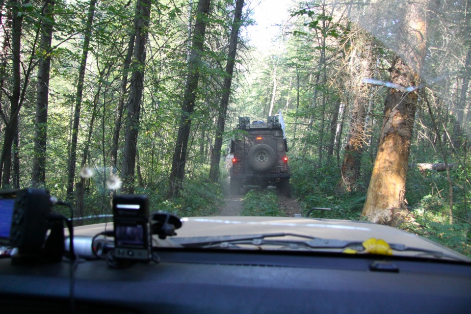 От Зигазы до Верхнего Авзяна идет вполне приличный грейдер, только очень пыльный, в такую погоду. Это доставляет свои неудобства при движении в колонне, за исключением головной машины. Прежде всего в пыли не видны лесовозы, которые иногда вылетают в лоб из-за поворотов на приличной скорости, абсолютно не прижимаясь к обочине. К колоннам из нескольких машин здесь не привыкли и нередко пропустив первую (видимую) машину встречный водила из местных дает газу прямо в пыльное облако, в котором движутся остальные экспедиционеры. Правда тут спасает рация и предупреждения идущим первым экипажа. Гораздо неприятней ехать по такой дороге в колонне в жару и без кондея.