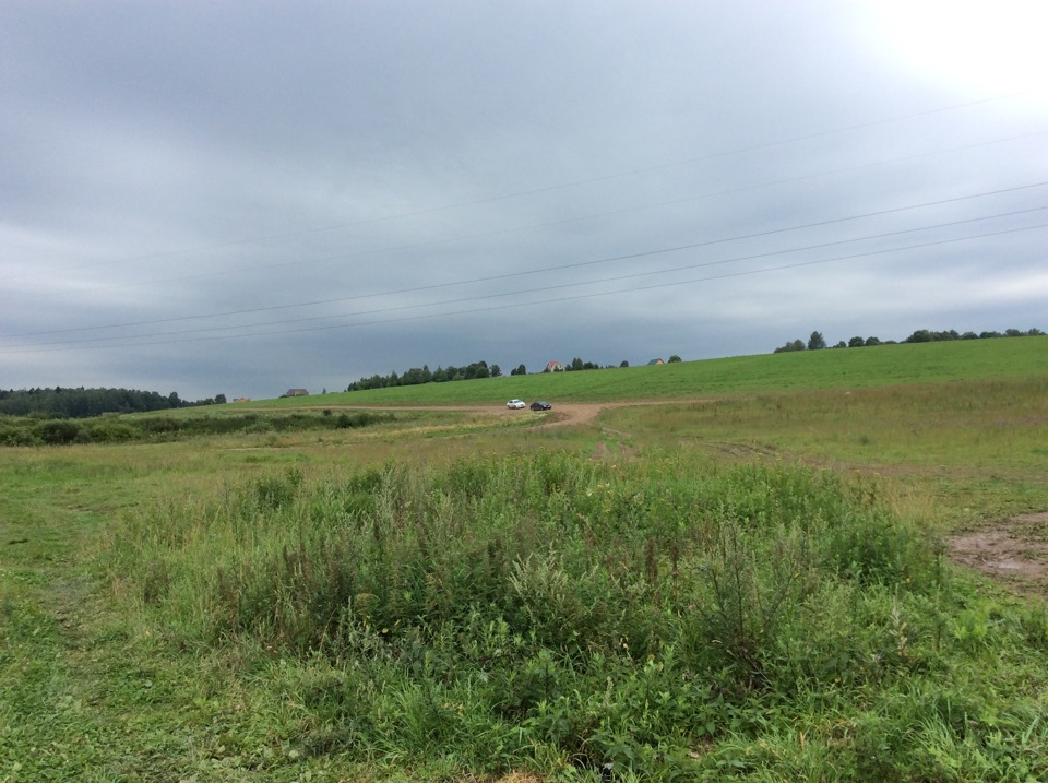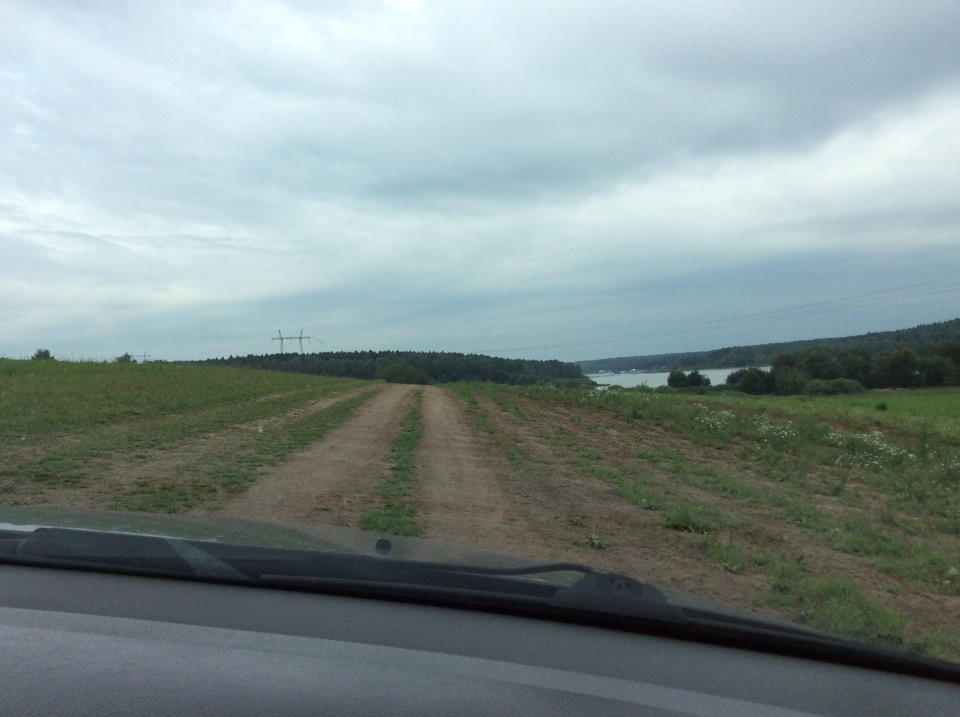 Буквально через несколько километров мы свернули в деревню Дерюзино. Сначала ехали по асфальту, потом он кончился и мы продолжили путь по полю.