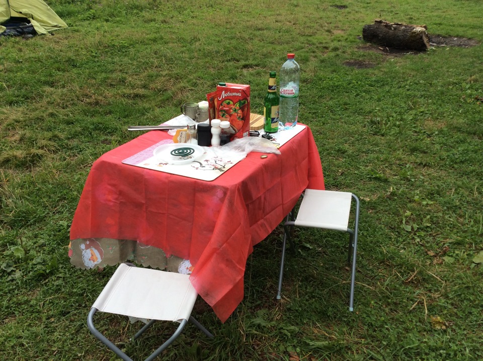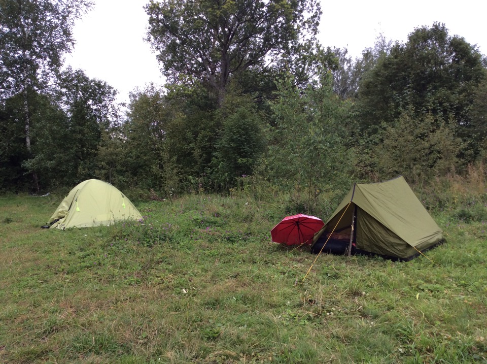 Нашли очень хорошее место. В низине с правой стороны от озера есть небольшая поляна, на которой мы разбили свой лагерь.