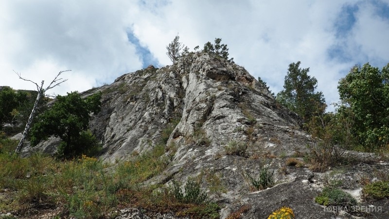Чтобы зайти в Старомурадымовскую пещеру, придется немного спуститься вниз, и по сыпучей тропе обогнуть каменный утес, в котором находится Голубиный грот. Считают, что в древние времена обе эти пещеры являлись единой карстовой системой. Кстати, прямо на склонах хребта произрастает невероятно ароматный можжевельник.