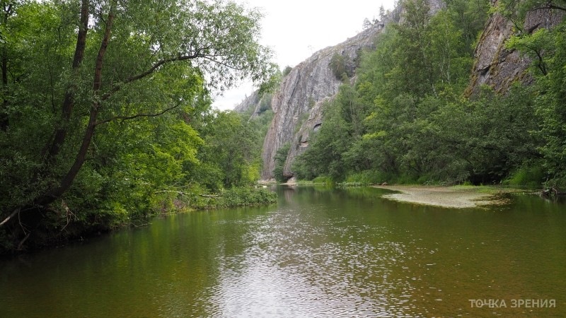 Благо, что лето 2016 года выдалось необычно сухим и жарким на Урале, и, как следствие, температура воды в реке была вполне комфортной для перехода босиком. В менее теплое время года здесь понадобятся высокие резиновые сапоги.