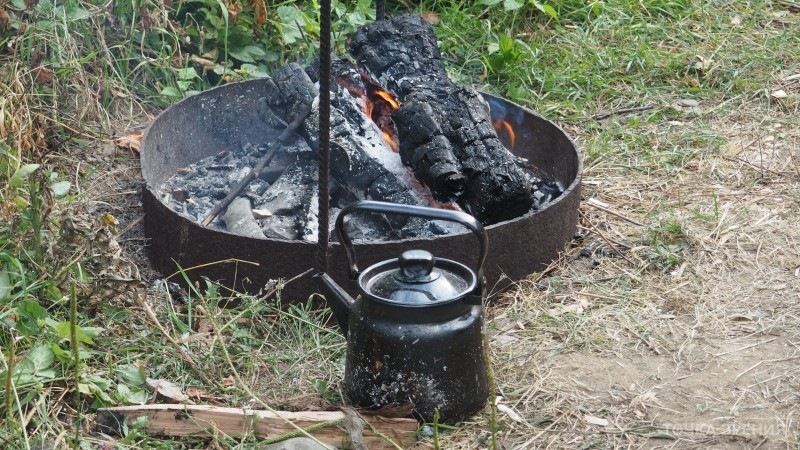 Наша ситуация усугубилась ещё и тем, что нам пришлось искать во тьме ночной друзей, которые предусмотрительно приехали на место ещё днём. Так как было уже за 11 часов вечера, делали мы это с фонарём, долго и нудно. Даже решили уже ставить палатку у ближайших кустов. Но нас спас знакомый чайник, висящий над тлеющим костром. Друзья обнаружены, палатка поставлена где надо. Можно и спать.