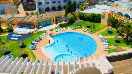 Отдыхали с подругой с 12 по 23 сентября 2013 года, завтрак+ужин. Выезжаю куда-то крайне редко, сравнить особо не с чем, купила путевку сгоряча, позже почитала отзывы об отеле и ужаснулась, готовилась к 10 дневному ВЫЖИВАНИЮ. Итак: совсем-совсем не голодали, ничем-ничем не отравились, никто нас не обидел и не хамил, особой антисанитарии (здесь я очень капризна!) не отметила ( да, бывают мушки, да, видела 1 маленького таракашку (не в номере!), да, номер убирали чисто символически, все полотенца каждый день убирали в 10 утра, а чистые приносили после 15. Просто перед уходом клали по полотенцу в чемодан чтобы после пляжа было чем утереться-таки! Чаевые мы давали горничной скупо, но нам за это не мстили и вообще сервис не очень навязчивый, но вполне приемлемый. По расположению отеля: 5 минут (если ели-ели ползти) до 2 маленьких пляжиков (огороженных веревочками, с зонтиками и лежачкам, без душиков (я их и на пляжах других отелей не видела), без раздевалок, достаточно грязненько). Идти на пляж - через дорогу по которой несутся машины. 1 или 2 в час, либо полтора мотоцикла в день! Местное население на наши пляжики лазило, вело себя мило, не очень навязчиво и при суровом взгляде испарялось с улыбкой! пляжики маленькие, если туристов много лежаков хватало не всем, лежали на своих тряпочках на песочке (мне так даже и комфортнее, честно!), но тесновато, особенно если рядом компания сильно болтливых и много курящих). Грязи много: на пляже, в море (море и дно на 5+!), в городе. И в стране тоже (ездили на 3 экскурсии и убедились в этом). сейчас у них в стране такой период: им не до уборки! но к отелю это отношения не имеет! Отель ОЧЕНЬ ДАЖЕ НЕ ПЛОХОЙ! Во всякой анимации я ничего не понимаю, но другие туристы ее хвалили. Я к бассейну с горками на территории отеля не ходила, только посмотрела, т.к рядом ТАКОЕ море, но народ туда ходил активно, особенно с детьми и когда на море были сильные волны. На экскурсиях с народом в автобусе общались: никто не стенал и волосьев на себе не рвал от недовольства отелем, представитель Пегаса (Кристина)- вообще выше всяких похвал, умница! В Тунис бы я больше, наверное, не поехала, а отель нормальный и достойный своих звезд! А может, лет через 5 и Тунис станет привлекательней, когда они со своей политикой разберутся! Они стараются!