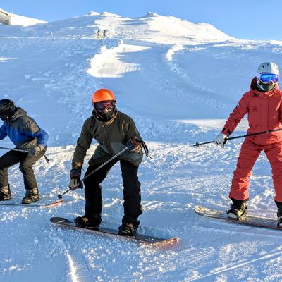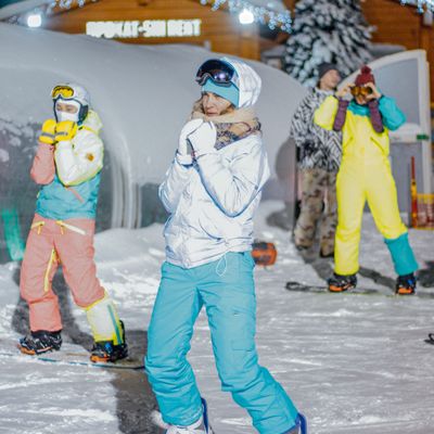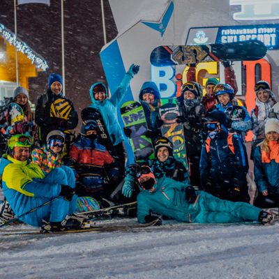 13:30 - Приезжаем на склон. Новички идут на открытую тренировку к лучшим тренерам.