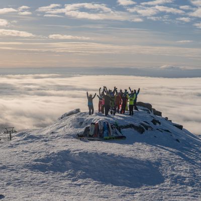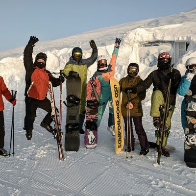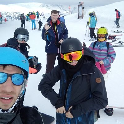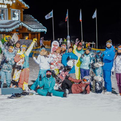 - ? Учим катать на сноуборде (большая часть людей в наших турах новички).