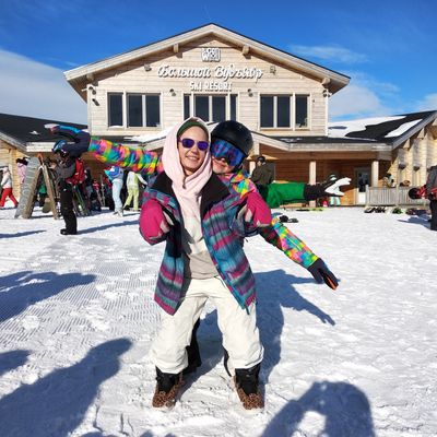 ✅Отводит всех туристов, как новичков так и профи, на открытый урок по катанию на борде и лыжах, ураа!!
