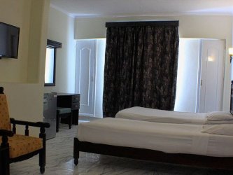 Маленький отель,маленький пляж,маленькие номера.Для тройки это конечно оптимальный вариант по деньгам,но если вы привыкли к определенному комфорту,то вам такие масштабы будут непривычны.В номере нет фена,все время не было мыло.Встретили нас в аэропорту по расписанию,гиды вежливые.