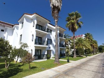 Трехзвездочный отель находится в Турции неподалеку от города Сиде. Белое здание с балконами окружено пальмами и зелеными лужайками, из номеров видно бассейн с водными горками, деревья и соседние дома. До частного пляжа можно дойти за 5 минут. В отеле есть все условия для отдыха с маленькими детьми — игровая площадка, детский клуб и хорошее питание. Взрослые могут расслабиться в сауне или хамаме. В ресторане сервируют блюда турецкой и международной кухни. Поблизости расположены супермаркет, рестораны, отделения банков, аптека и магазины.