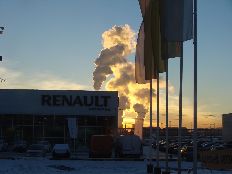 Проехал Новосиб и заночевал. От Новосибирска всё было не так страшно с дорогой, но пошёл снег. До самого Омска валил, ещё и ветер дул. Видимости больше 100 метров почти не было. А под Омском РАЗ! и всё кончилось! Раз ехал медленно, ночь застигла где то между Омском и Ишимом. В Тюмень въезжал в полпятого вечера 4 декабря. Зафотал красивый закат в облаке пара от ТЭЦ.