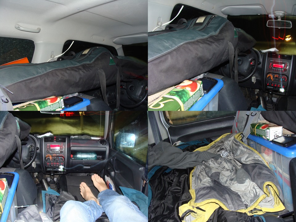 Переднее пассажирское сидение раскладывается в горизонталь, двигается вперёд до отказа, заднее складывается, все шмотки перемещаются вправо, под себя всю одежду, мягкие вещи и спальник – всё, вы на курорте!