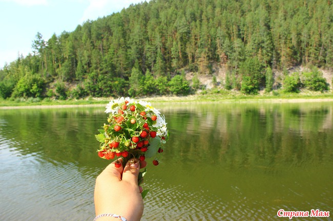 Здесь мы остановились на небольшой отдых. Нашли полянку с ароматной и сладкой земляникой. Время было уже пять вечера.