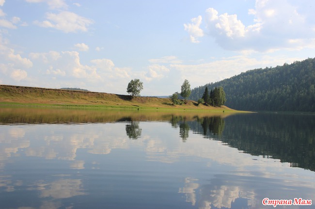 В этот день мы проплывали две большие поляны. Когда-то там стояли деревни Ивангай и Янбай. Шикарно красивые места. Поляны очень большие. Одна - Ивангай - находится на правом берегу Уфимки, другая - Янбай - следом на левом. Речка обтекает одну и другую полукгругом. Нам понадобился целый день, чтобы проплыть эти бывшие деревни. На веслах не сидели, просто плыли по течению.