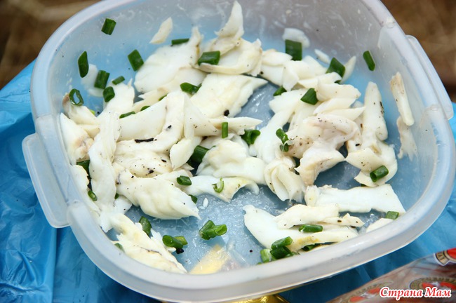 На следующий день судака разобрали, посолили, полили лимончиком, посыпали луком и. съели