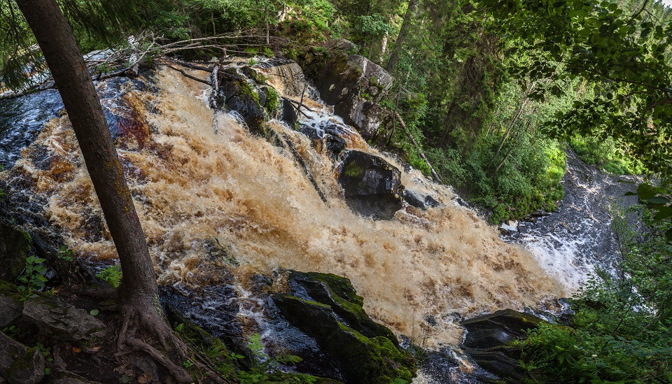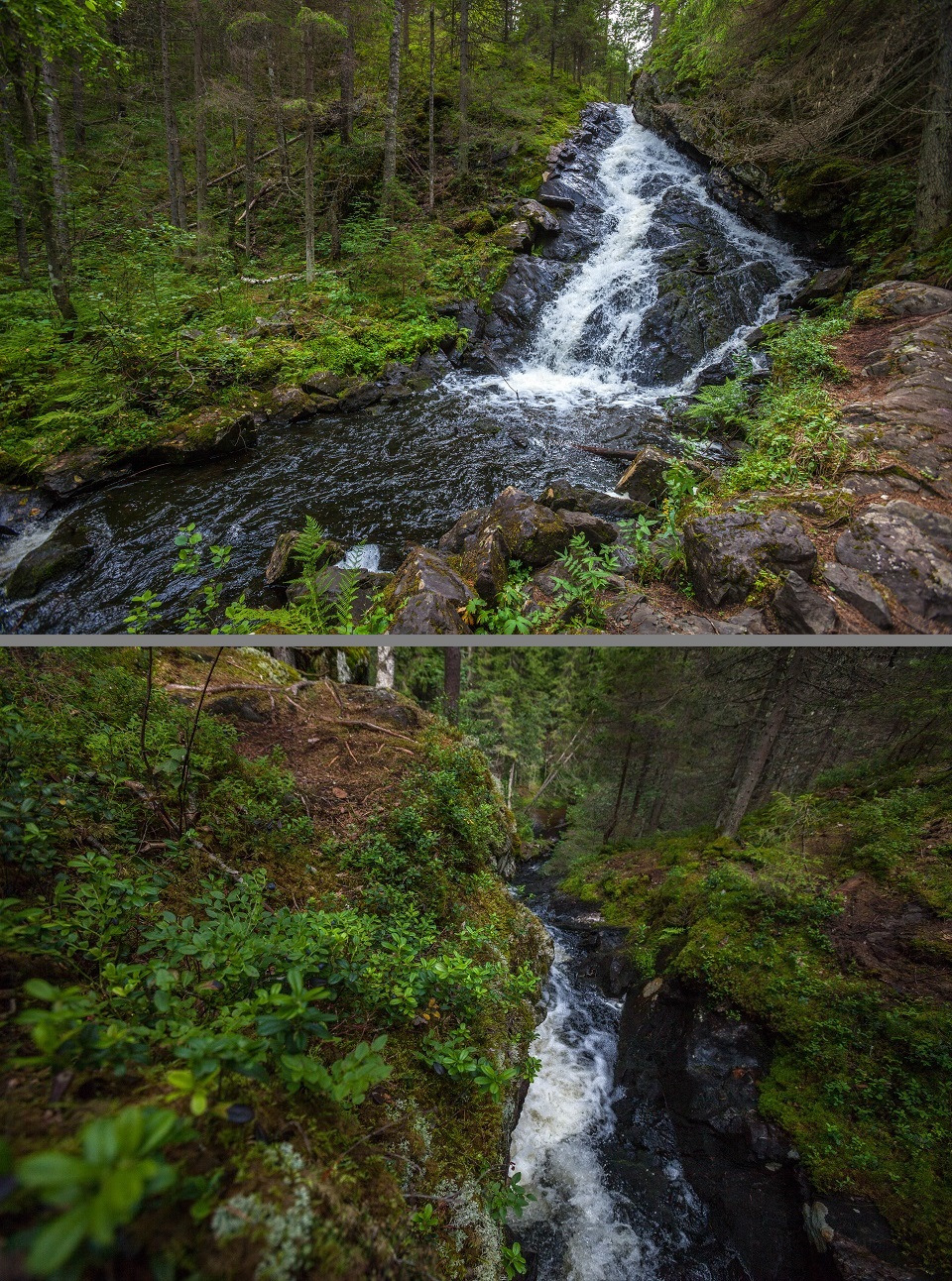 Примечательность этого водопада в том, что он течет по треснувшему монолитному камню и часть потока скрыта внутри.