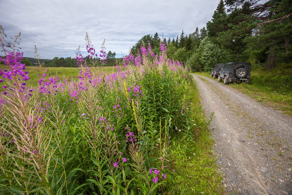 Проехали по запланированным точкам ГЭС и красивые поля с иван-чаем, которые я заприметил в прошлой поездке и рванули к водопаду!