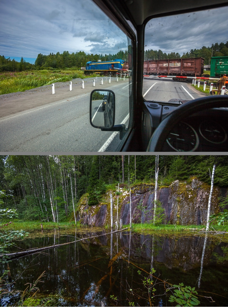 Итак, покинув удивительный мраморный карьер, мы решили искать место для ночевки, а стоять мы собирались на озере Вахваярви, чтобы потом по грунтовой дороге, вдоль озера и железки выйти к