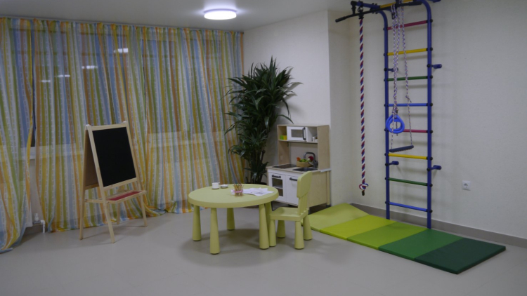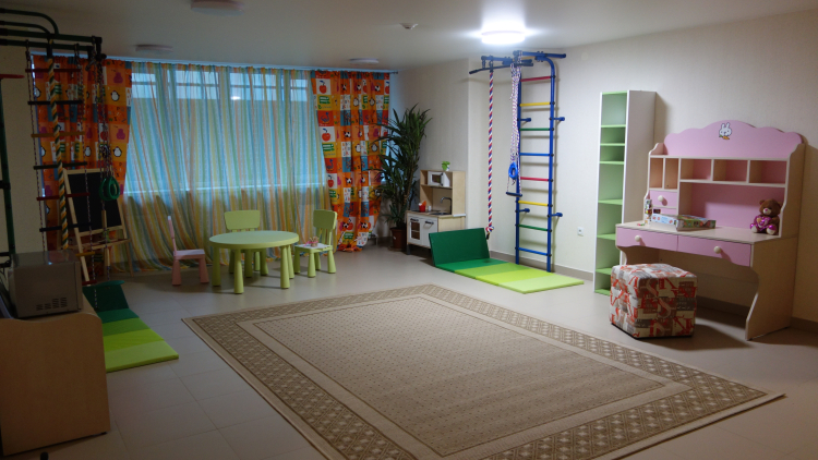 Детская игровая площадка и детская комната.