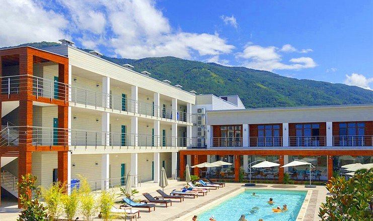 Отдыхали с 26.05-02.06.2021. Отель понравился ( как в Турции ) . Вкусная , разнообразная еда , очень чисто на кухне , в номере и на территории . Отдыхали с семьей 2 взрослых и 2 детей (13 и 3 года ) , анимация отливная , игровой комплекс , игровой клуб , игры , качели , спорт площадка . Для взрослых йога , танцы , игры- супер . До моря рукой подать . Лето в этом году пришло поздно , поэтому в море искупались несколько раз , холодновато , но нас спасал бассейн с подогревом ( в других отелях такого нет ) . Нахватало музыки возле бассейна . Фрукты , специи ,чай , алкоголь -дешевые , одежда как и в Москве на рынке (5 минутах ходьбы ). Из одежды берите сабо , так как пляж каменистый , ветровку , кроссовки для спорта . Мокрые вещи сохли по 2 дня , большая влажность . В общем отель - твёрдая 4. К отелю не имеет отношения , но трансфер забирает гостей за 6 часов до вылета , из-за пересечения границы ( это самое тяжелое ) ехать от аэропорта до отеля 50 минут . По поводу экскурсий: берите денег наличными и карты ( банкоматов нет , пэй пас у них не работает , только пластик ) , ездили на озеро Рица 2000 ( за 3 взрослых и ребёнок бесплатно ) ( по 300 с каждого доп за показ дополнительных водопадов ), 2000 на ресторан , фото по 100 рублей с отринутыми на достопримечательностях , вино , мёд вкусные ( по любому купите себе и в подарок )